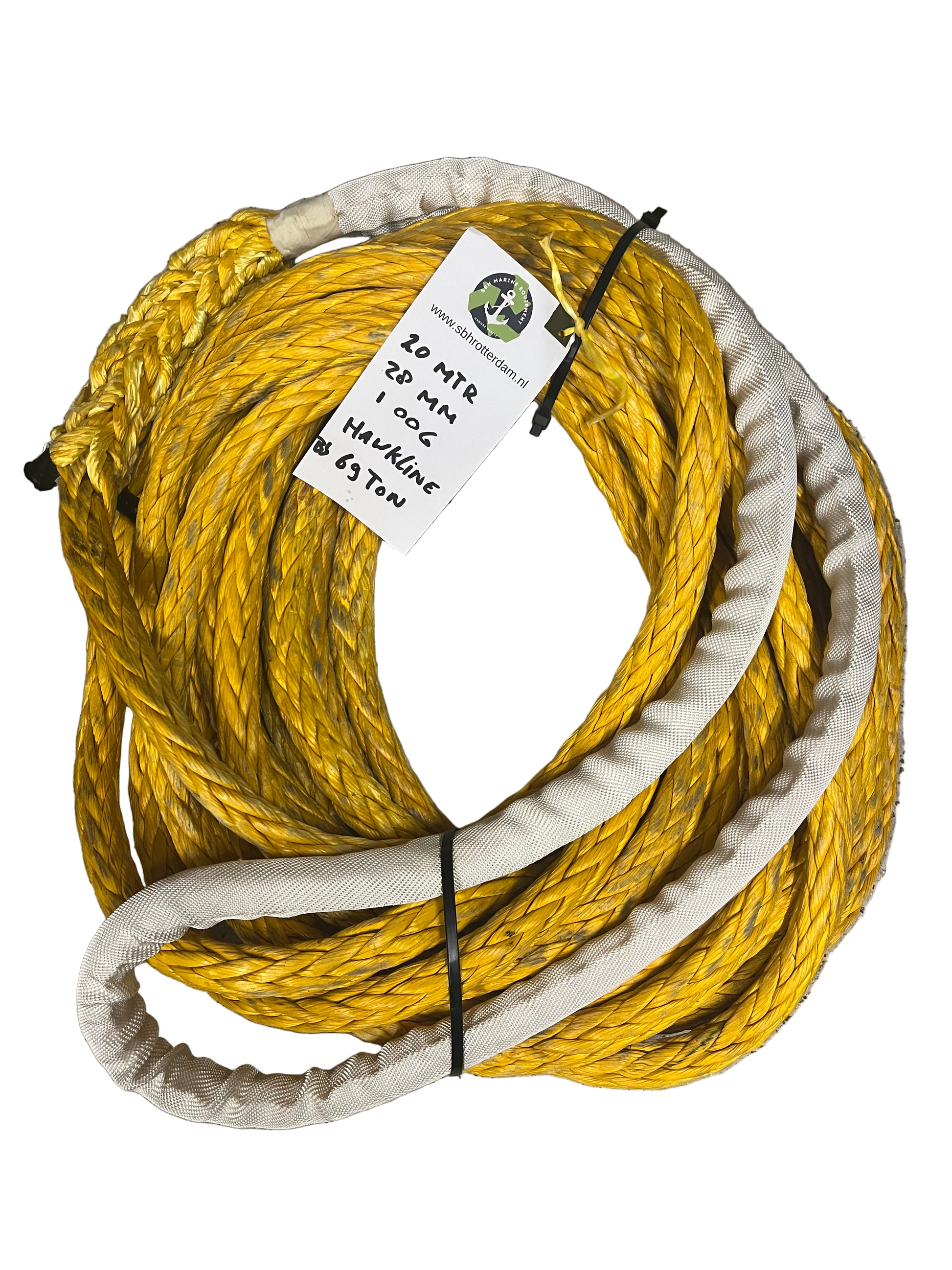 Hawk-Line Touw UHMWPE 20 Mtr 28 mm 69Ton 1 Oog mooring line afmeerlijn Dyneema rope afgeleid